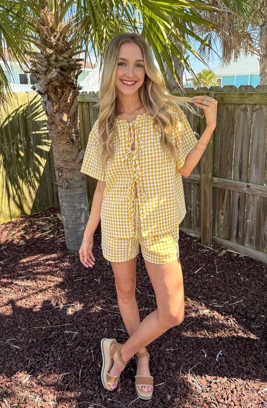 Picnic Vibes Only Gingham Ribbon Top & Short Set