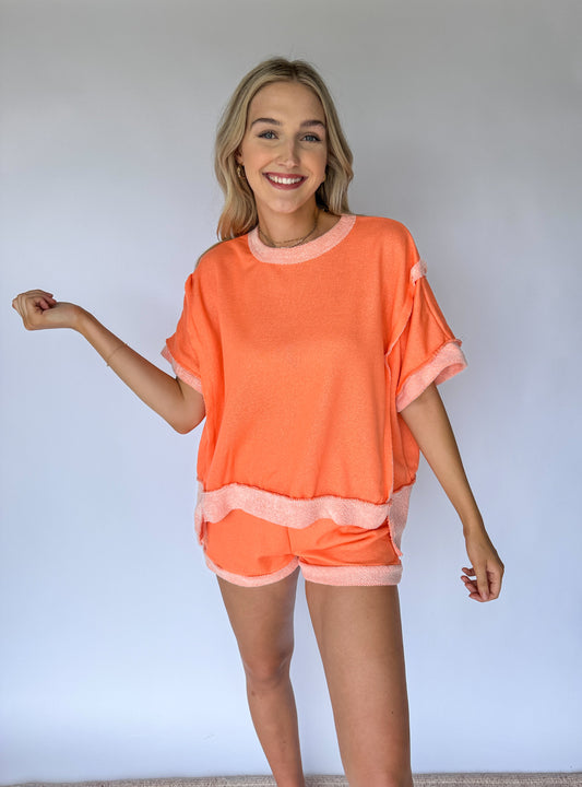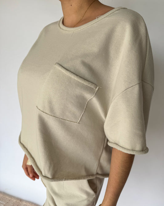 Never Looking Back Terry Raw Hem Boxy Tee *Beige*