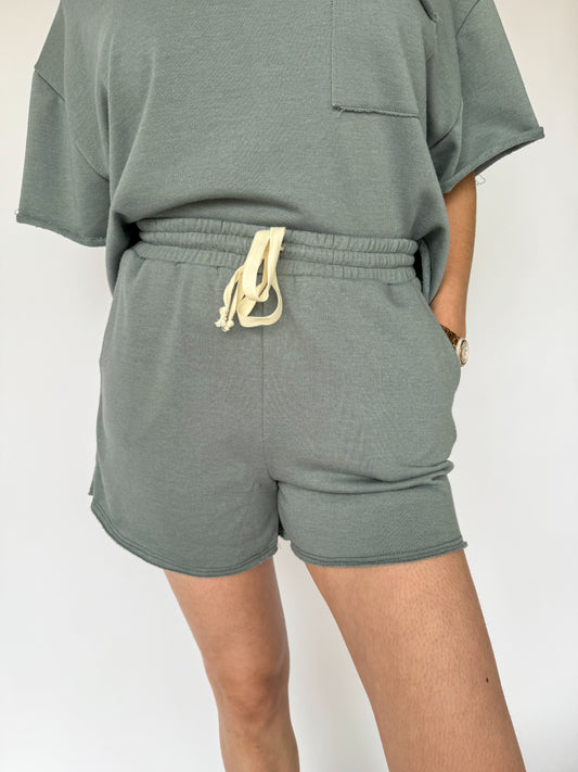 Never Looking Back Terry Lounge Shorts *Stone Blue*