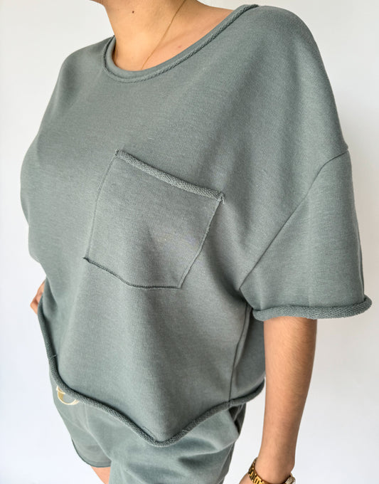 Never Looking Back Terry Raw Hem Boxy Tee *Stone Blue*
