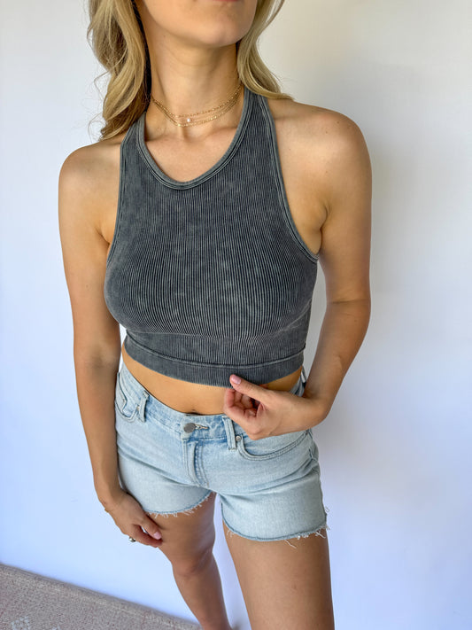 Care Free Ribbed Seamless Crop Top *Ash Black